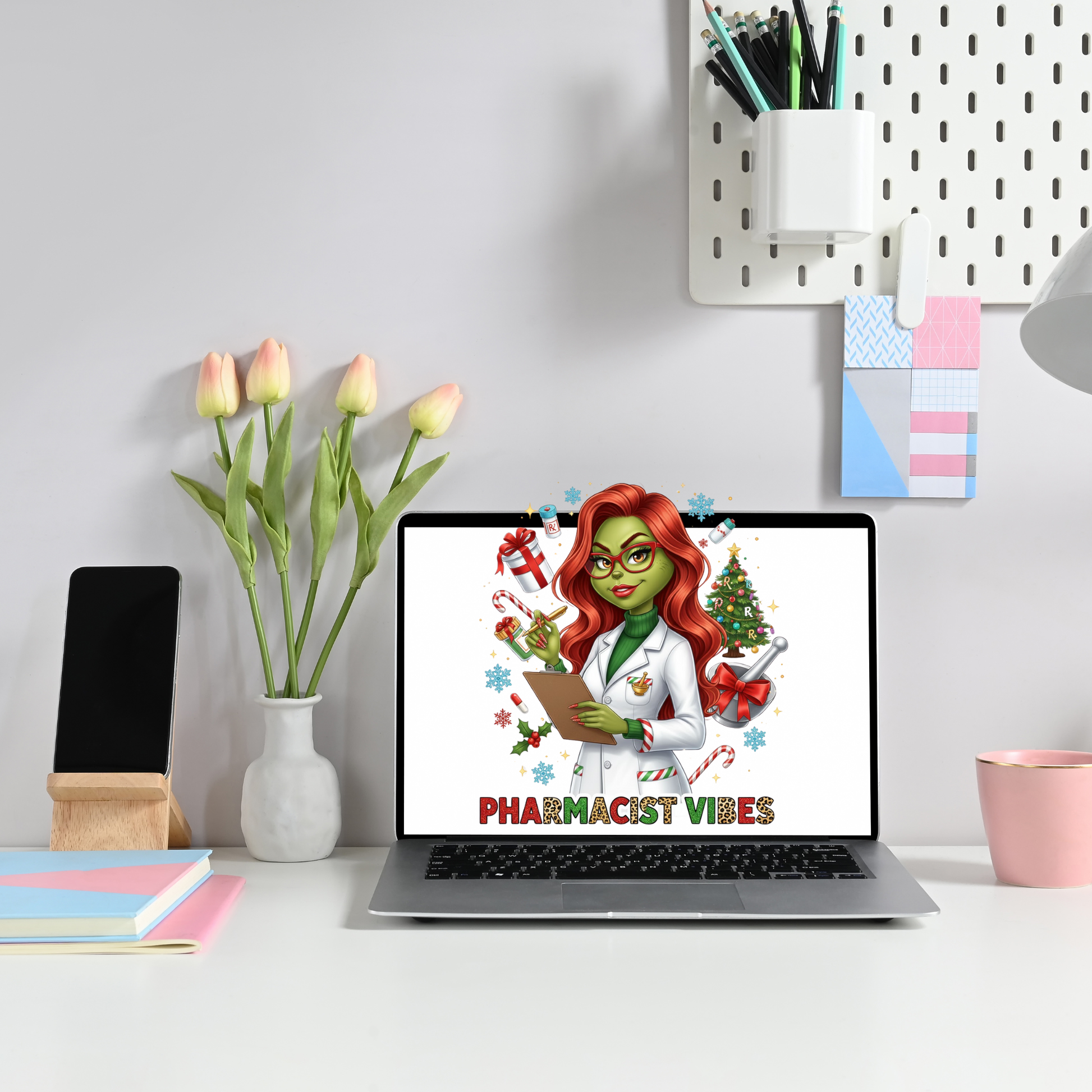Add some festive fun to your shop with this adorable Grinch-style “Pharmacist Vibes” PNG — perfect for pharmacy pros who love Christmas cheer!